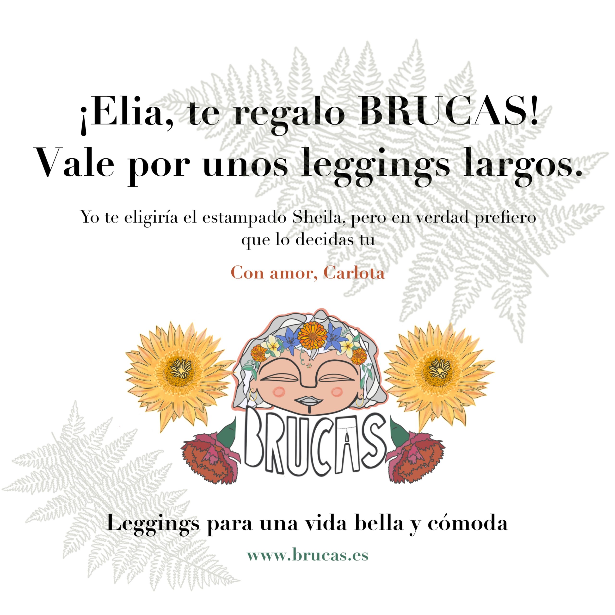 ¡Un bonito regalo es dejar que elijan! Tu sólo tendrás que elegir si prefieres leggings cortos o largos y hacerle llegar el vale regalo personalizado que te enviaremos. Quién lo reciba, sólo tendrá que elegir el estampado que más le guste y contactar con BRUCAS para tramitar el pedido.